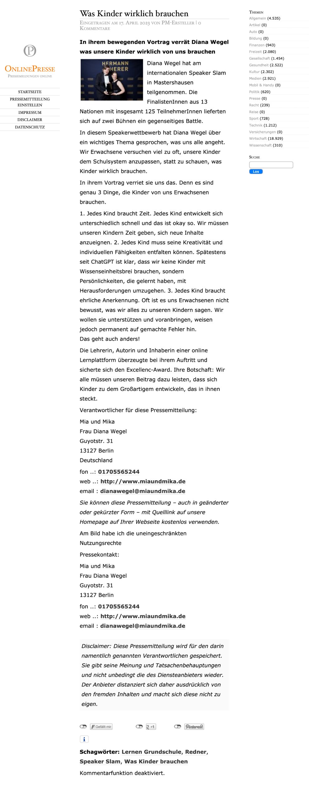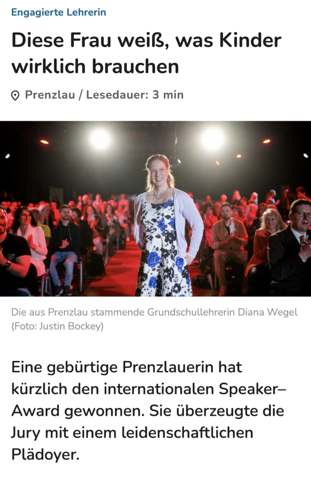 Diana Wegel überzeugt nicht nur ihre Zuschauen und Zuhörer, sondern auch die Presse mit ihrer wichtigen Botschaft für die Welt: